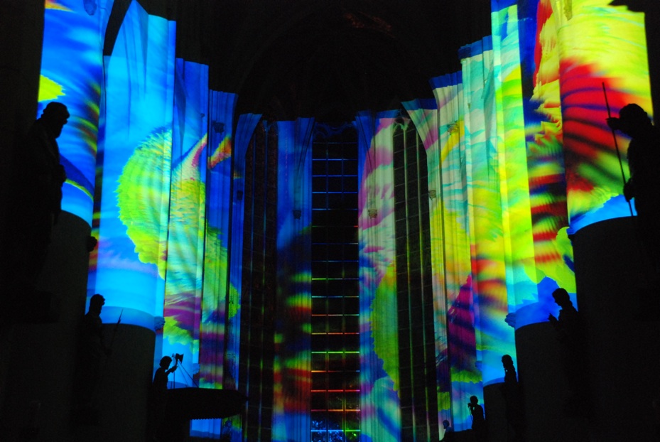 Visuelle und akustische Erlebnisse beziehen sich aufeinander und verstärken sich, bilden ihr gegenseitiges Echo und finden ihren Widerhall im Raum und seiner Architektur.